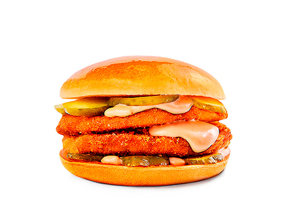Булочкакуриная котлета 2шт.огурец маринованныйсоус