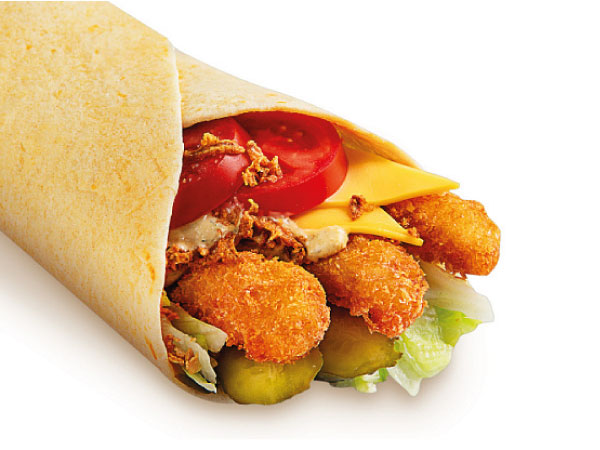 Лепешка пшеничнаякреветки темпурасалатогурец маринованныйпомидорсыр Хохландлук фрисоус.