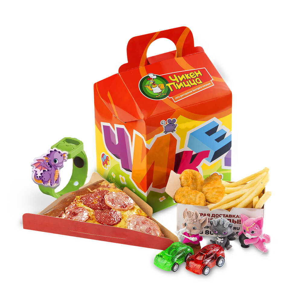 Пицца Детская кусочекКартофель фриНаггетсы 3 штКетчупНовая серийная игрушка