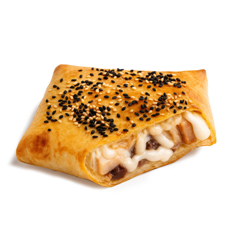 Запеченная лепешка пшеничная Филе куриное фри Шампиньоны Продукт Моцарелла Кунжут Соус альфредо